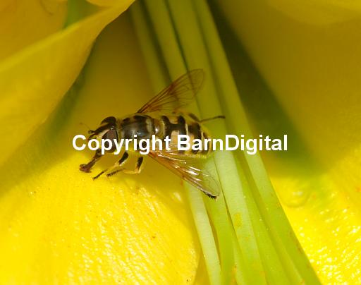 fly plant botany flower pollen blossom anther filament stigma style pistil petal male female colour color orange bulb monocot monocotyledon lilliaceae Syrphidae Diptera true fly insect insecta compound eye science nature wildlife wild life closeup close up BarnDigital Barn Digital Michael Grant