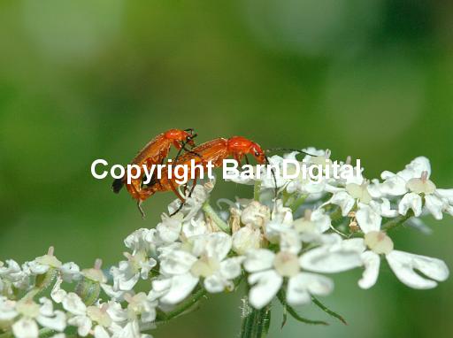 science nature nectar white flight flower insect insecta bright summer beetle Coleoptera Cantharidae Umbelliferae carrot family plant botany weed green flower pollen pollenation blossom anther filament stigma style pistil male female colour color plant wildlife wild life closeup close up BarnDigital Barn Digital Michael Grant