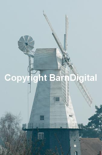 Dating from 1814, the white weather-boarded Union Windmill in Cranbrook is the finest working Smock windmill in England. Cranbrook, Kent, UK. 26 March 2005