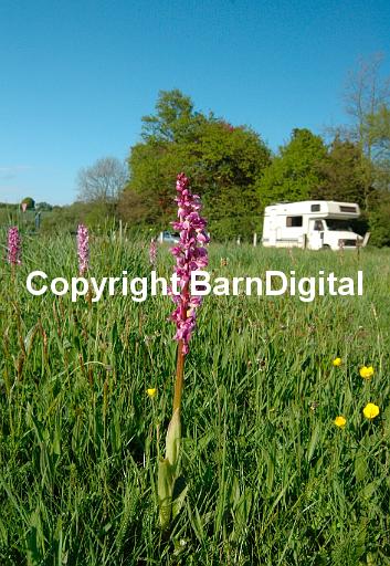 Roadside verges can be a haven for wildlife now that spraying with weedkiller is out of favour. Here Early Purple Orchids (Orchis mascula) grow within a few feet of the traffic. Bedgebury Forest, Kent, UK 02 May 2005