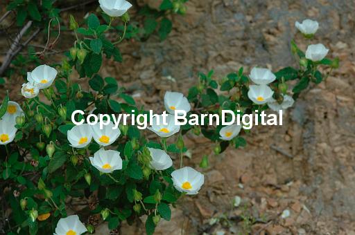 delicate dainty pretty tough rock stone dry arid Rockrose family Cistaceae rose white yellow plant shrub flower pollen pollination blossom nectar anther filament stigma style pistil science nature botany BarnDigital Barn Digital Michael Grant