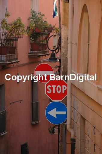 town city signs signage stop street no entry no through road warning sign street furniture travel Italy Europe BarnDigital Barn Digital Michael Grant