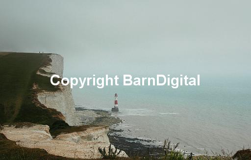 Sea ocean cliff white cliff chalk rock reef ship shipwreck English Channel Manche warning danger red white fog fog horn mist storm trinity house light Landscape travel BarnDigital Barn Digital Michael Grant