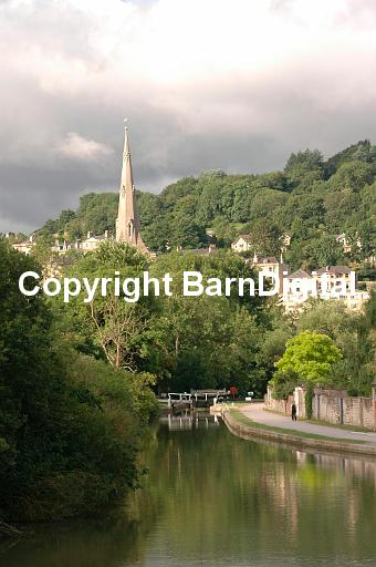 Kennet and Avon Canal. At Bath the river Avon and the canal separate and the canal climbs 70 feet through the Widcombe Flight of six locks. Bath, UK. 21 July 2005.