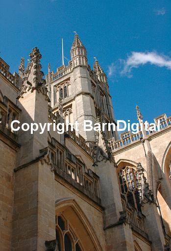 stone construction building edifice mason carve gothic ornate decorative bath stone blue sky tower pillar balustrade arch church religion worship Christianity monastery dissolution travel BarnDigital Barn Digital Michael Grant