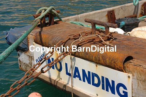 sea beach south coast summer trip holiday tourism boat ship vessel travel danger warning no landing rust chain rope red BarnDigital Barn Digital Michael Grant