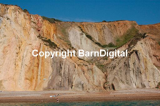 sands sandstone colour Bracklesham sand Tertiary geology cliff sea beach erosion Cretaceous south coast science nature travel landscape danger warning BarnDigital Barn Digital Michael Grant