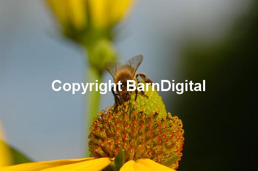 nectar pollen pollenation fly flight flower Hymenoptera Apocrita insect insecta proboscis compound eye summer social science nature wildlife wild life sumer flower blossom anther filament stigma style pistil petal seed fruit male female pollen reproduction Daisy family Compositae closeup close up BarnDigital Barn Digital Michael Grant