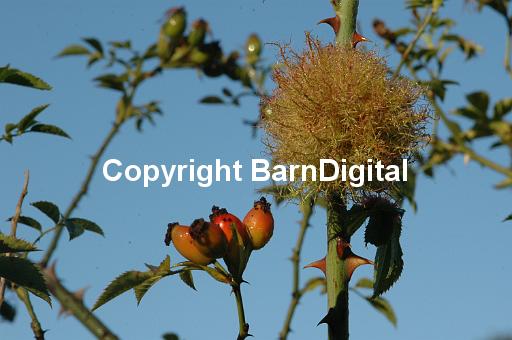 * This growth on a wild rose is called a Bedeguar Gall, or more picturesquely a Robin's pincushion. (Bedeguar comes from a French, and ultimately a Persian, word meaning 'wind-brought').