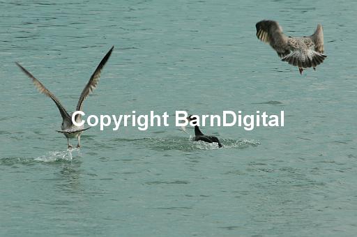 phalacrocoracidae Laridae bird aves wildlife wild life sea beach coast swim fly flight fishing dab flounder hunt chase bully steal squabble science nature BarnDigital Barn Digital Michael Grant