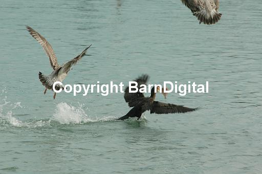 phalacrocoracidae Laridae bird aves wildlife wild life sea beach coast swim fly flight fishing dab flounder hunt chase bully steal squabble science nature BarnDigital Barn Digital Michael Grant