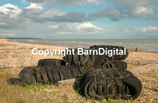 rubber waste reuse recycle beach sea seaside shingle bank wild English Channel BarnDigital Barn Digital Michael Grant