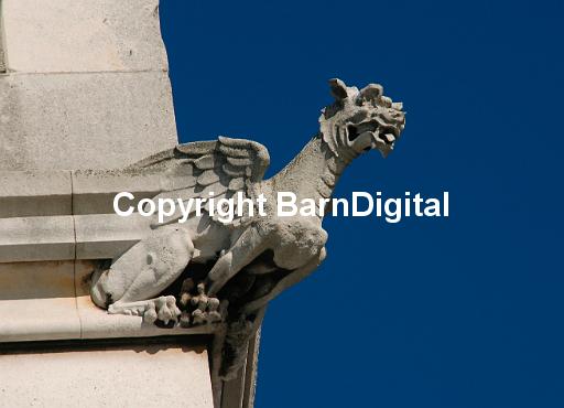 Decoration on Tower Bridge in the form of a winged mythical creature, perhaps a dragon. This bascule bridge across the River Thames was designed by Horace Jones and John Wolfe Barry. It was completed in 1894. London , UK, 27 October 2005.