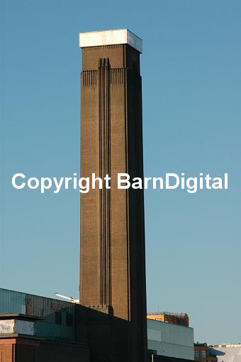 The splendid brick chimney of the Tate Modern Gallery building which was originally the Bankside Power Station, designed by Sir Giles Gilbert Scott. Southwark London, UK. 07 November 2005.