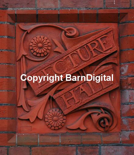 architecture art deco arts and crafts Barn Digital BarnDigital brick building construction decoration decorative fanciful Michael Grant MIchaelGrantImages ornament ornamentation red sign