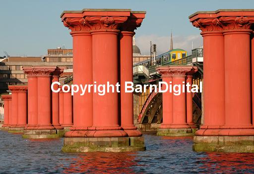 train transport transportation trade commerce steam Victorian engineering column pillar bridge river crossing defunct proud grand grandiose ornate decorated steel iron stone passed old past glory unused discarded cast aside finished with melancholy useless hubris travel London Michael Grant BarnDigital Barn Digital