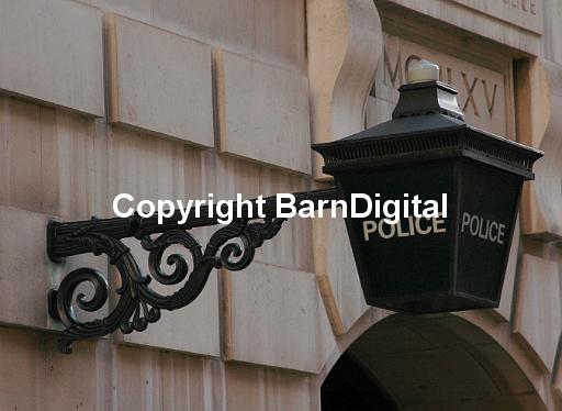 police blue light lamp lantern sign symbol old fashioned traditional service security safe safety bobby copper fuzz peeler cop nick beat glass ironwork stone Michael Grant BarnDigital Barn Digital