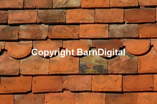 clay earth ceramic earthenware terracotta red brown nib peg tile club wall roof building material tradition natural pattern curve line decorative Michael Grant Barn Digital BarnDigital