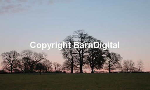 autumn winter fall sunset sky evening cold dusk twilight still silent bare tree branch twig hedge field skyline grass fence silhouette blue pink green plant tree beech family Fagaceae landscape Michael Grant Barn Digital BarnDigital